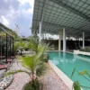 Punya 9 kamar tidur, aula luas, kolam renang semi pantai, bahkan ada panggung buat hiburan!